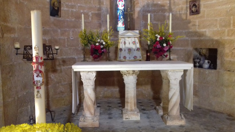 Ils chassèrent l’envahisseur et construisirent l’édifice. En 990, Almerade évêque de Fréjus, la dota d’un « autel en Val d’Empure » consacré à la Vierge (cartulaire de l’abbaye de Lérins).
